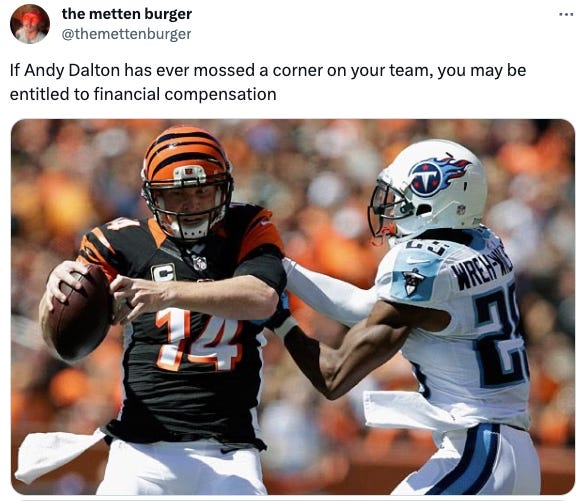 Andy Dalton is something your dad buys you for your birthday as a gag.