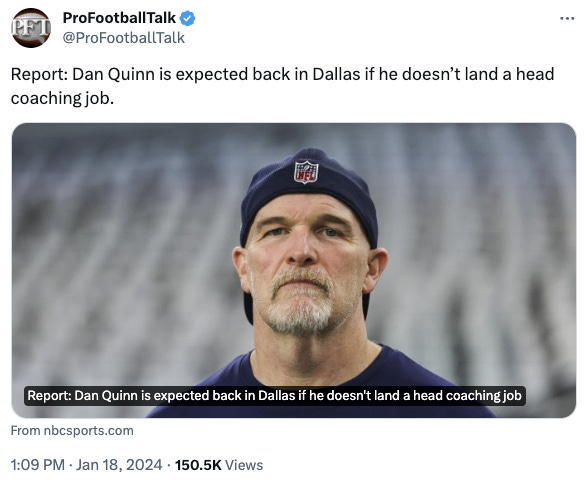 Maybe in the future we’re talking more about “pass game coordinators” (like Bobby Slowik) than “quarterbacks” but that’s the most obvious trend in head coaching hires, which does make sense: If the most important position in football is quarterback, then it is logical at the ground level to have your best player and your best position coach working at quarterback.