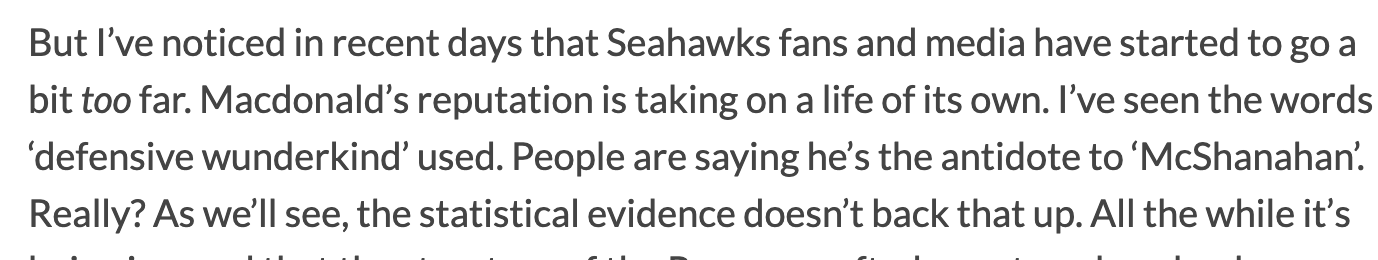 Firing Pete Carroll came with some controversy, although many people felt it was time, and hiring Mike Macdonald was almost universally praised except for one Seahawks writer/podcaster who felt his defensive value was being overrated: