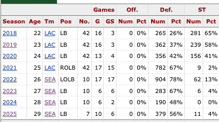 And by the way, Nwosu didn’t play 400 defensive snaps in any of his first three seasons in the league either: