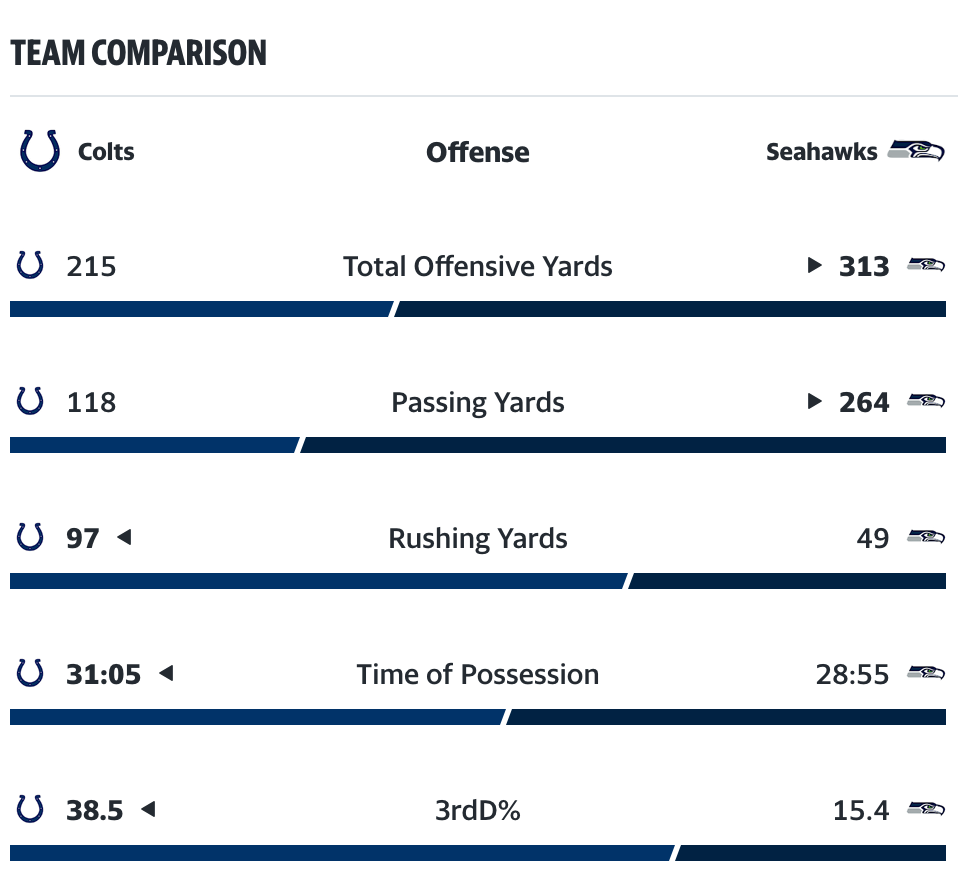 Indianapolis did everything it could for Rivers by running the ball decently with Jonathan Taylor (but only 3.5 YPC) and holding Seattle to six field goals. The Colts were less than a minute away from winning a game on the road in Seattle!
