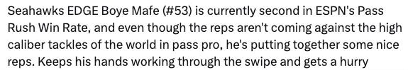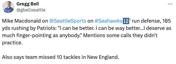Thanks for posting that video on JSN. I thought at the time I saw it that Geno had made it a difficult catch for JSN on that first third down throw, and the tape confirmed it. But also... that play should work ALL DAY LONG and it makes me wonder why the Seahawks did not run a version of it on 4th down? That play could easily go to either JSN or DK as well. If the corner opposite is on this outside shoulder, cutting off the line to the middle of the field will be good for 1-2 yards every time.