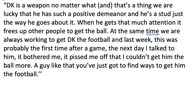 Ryan Grubb did acknowledge DK’s target share on Thursday, saying that he was “bothered” that the Seahawks couldn’t force more passes to DK: