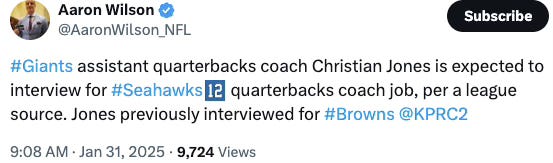For the second time in as many cycles, the Seahawks are showing interest in the New York Giants offense for some reason. A year after interviewing Giants offensive coordinator Mike Kafka multiple times about their head coach opening, Seattle is expected to interview New York assistant QBs coach Christian Jones.