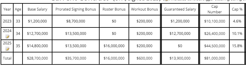 Prescott had a huge cap number coming in 2024 and Dallas brought it down to $44.6 million with an extension. Well, what’s his cap number in 2025 now?