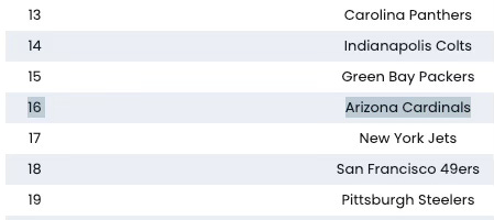 Case in point, I want to compare for you the “30th-ranked” Seahawks offensive line with an offensive line from the middle that I chose at random off of this list from FantasyPros.com: I’m going with the “16th-ranked” Cardinals.