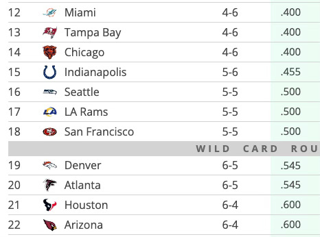 At 5-5, the Seahawks, Rams, and 49ers control the final three draft slots for teams that didn’t make the playoffs: