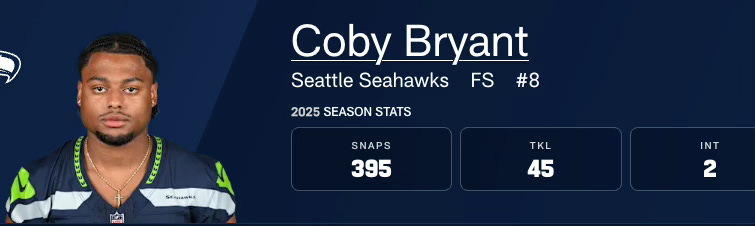 I really like Coby Bryant. I think he plays like a Seahawk. He’s very physical and was a forced fumble machine earlier in his career. I’d like to see him remain a Seahawk. I know there was an attempt to sign him earlier in camp, according to Brady Henderson, but he wanted more than JS had to offer and is betting on himself. His value to other teams is probably higher than it is to the Seahawks. They already have Love and Emmanwori under contract next year, and Okada will cost less to sign back to the team. (I think) Nevertheless, I still dream he will take a team friendly deal and stay.