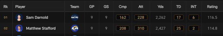 Instead of picking 5 players this week, I have a few landmarks that I think are important to meet for the Hawks to win. 1) win the turnover battle. I know we’ve won games even though we turned it over 2, 3 and even 4 times. But the teams we beat were not complete teams like the Rams. It’s time to step up, protect the ball and not leave the defense in several short field situations with this Rams offense. 2) build on the running success of last week. I don’t think we need 200 yards again, although that would be nice. How about 125+? A viable run game will help relieve the pressure of the pass rush. I also think the Rams and Shula will not go heavy box as much as we’ve seen this season. Betting on their D-line to stop the run. K9 might get stuffed, but without a stacked box, he might also break a few for nice gains. 3) pressure Stafford. I know Stafford gets rid of the ball very quickly and that makes pressure more difficult to bring, but I’m betting MM will find a way to bring it. It sure would be nice to double Stafford’s season total of 2 INTs so far.