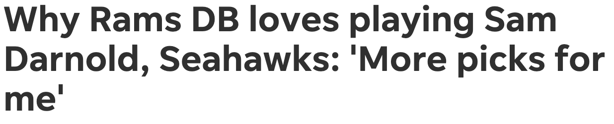 (This is a quote from Kam Kinchens, who had both of his only two picks this season off of Darnold, but also had his worst game of the season the last time L.A. played Seattle, which he conveniently leaves out here.)