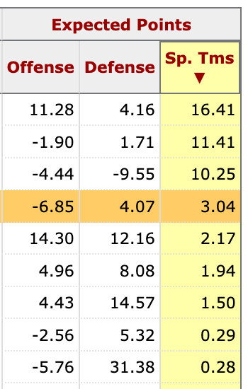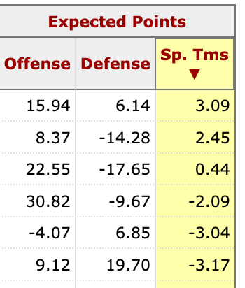 If special teams was treated the same as offense, then comparing the Seahawks to the Rams would be the same as comparing the Rams offense to the Saints offense.