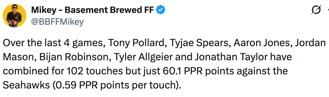 Jonathan Taylor was averaging over 7.0 yards per carry against a light box prior to facing Seattle! They held him to below half of his season average.