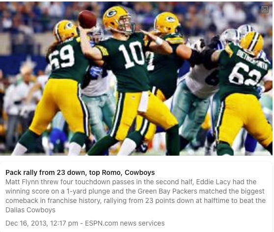 Flynn thought he might be the Raiders quarterback in 2013, but the team released him after one start in which he had an interception and three fumbles. He spent a few weeks on the Bills depth chart prior to being released for a second time in a month, then he played in five full games when he went back to the Packers after both Aaron Rodgers and another former Seattle QB, Seneca Wallace, got injured. In fact, Flynn helped Green Bay make a stunning playoff appearance that season, including coming back from a 26-3 deficit to the Cowboys by throwing four second half touchdowns.