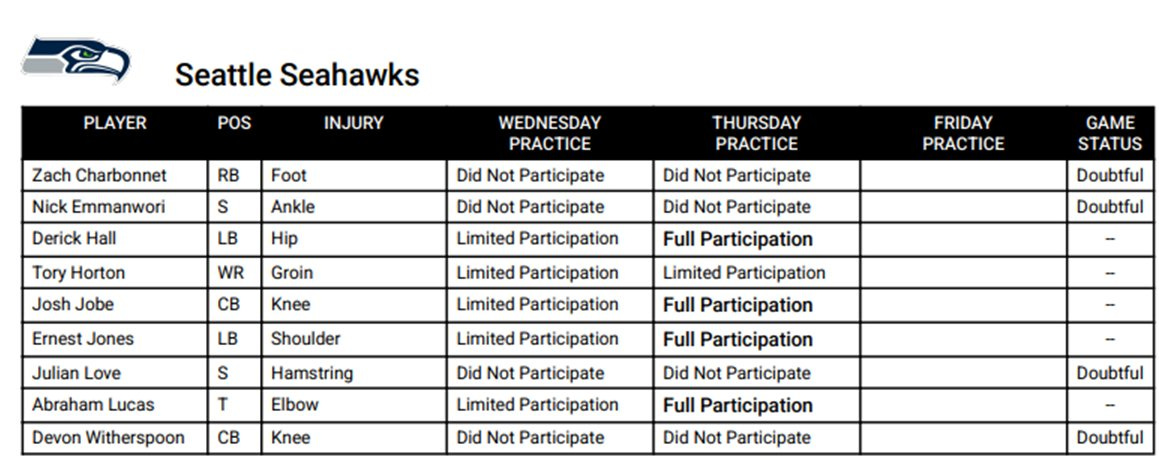 🩼4 Seahawks listed as DOUBTFUL vs. Saints