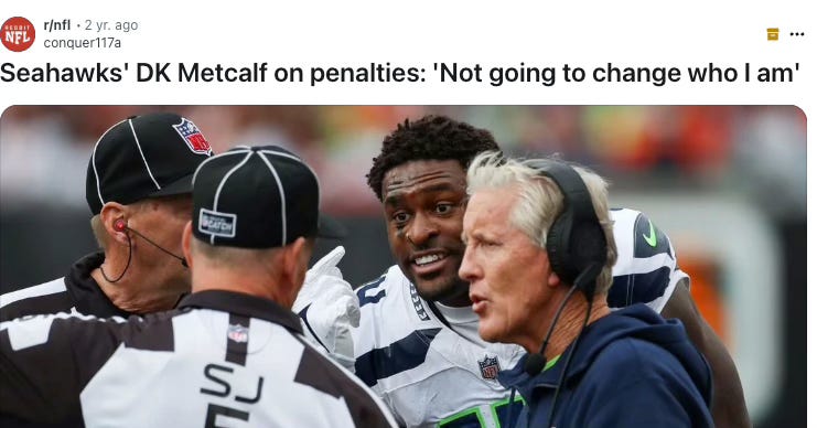 The expectations of a DK Metcalf penalty on Sunday are probably the most realistic and believable ones of all. It may not even matter that Metcalf knows that’s what people expect him to do because when he was on the Seahawks he had no problem letting the Rams or 49ers get in his head when we all knew that’s what they were trying to do.