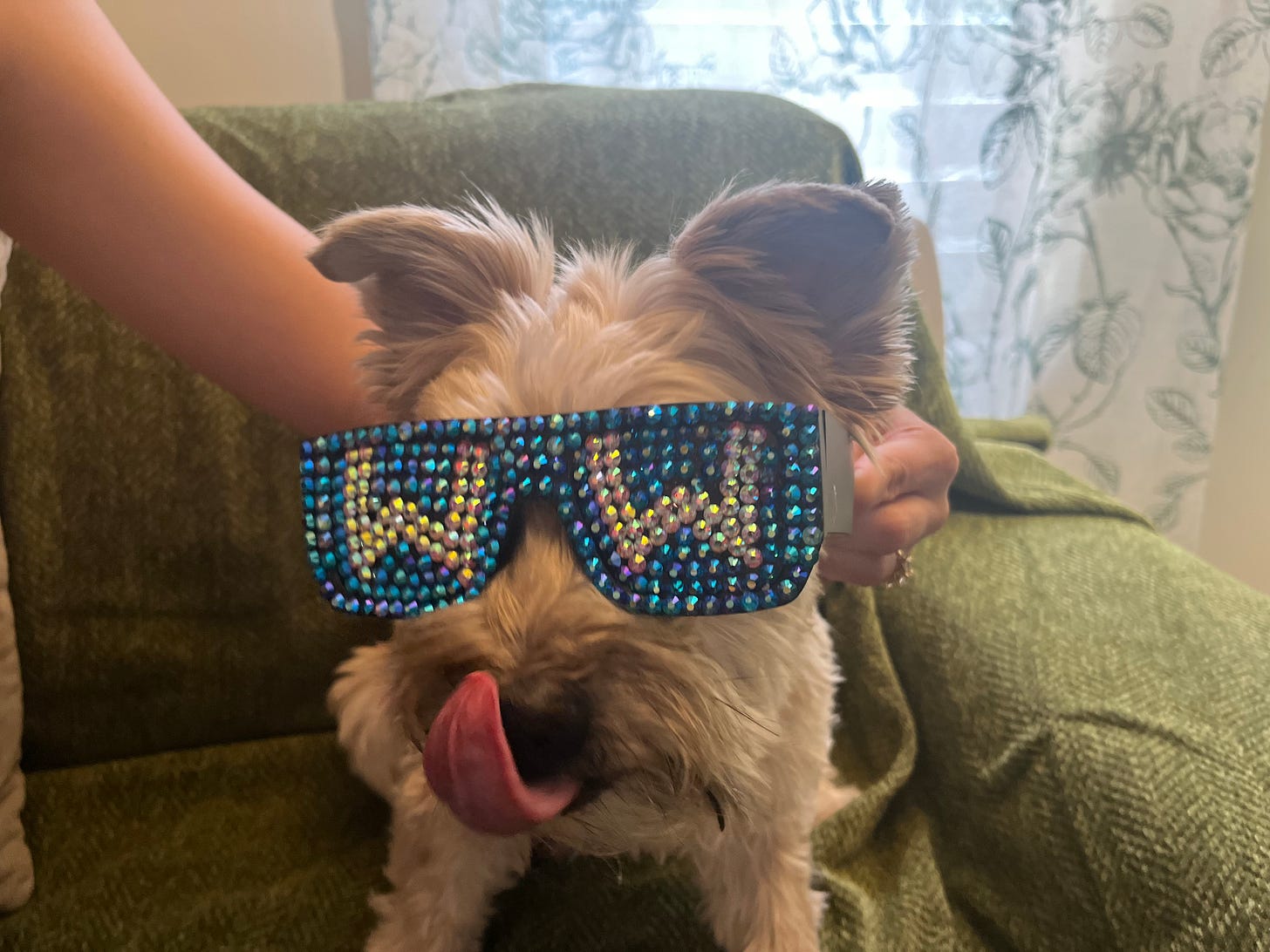 a) “Can I see out of these?” No, they’re COVERED IN RHINESTONES AND GEMS. These are for looks only.