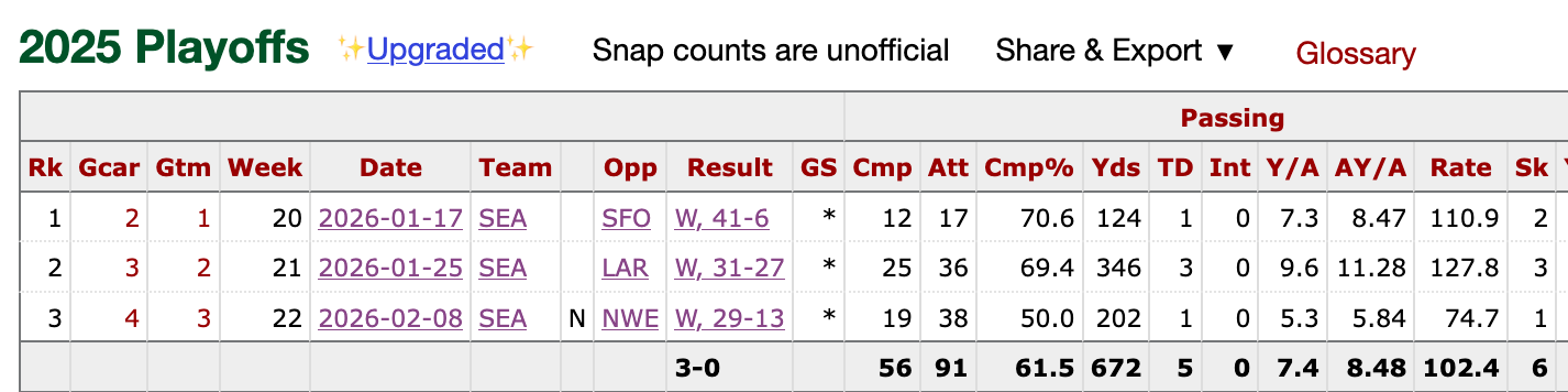 As it were, Darnold needed just 15.5 completions and 163 yards per game in those contests for the Seahawks to blow them out.