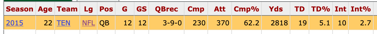These are practically the same stats as Marcus Mariota’s rookie season: