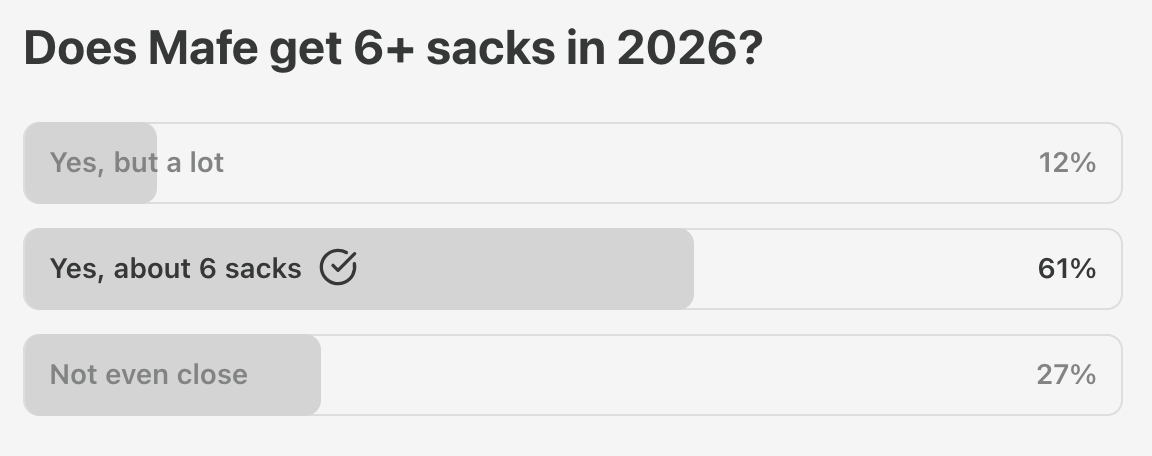 Darnold’s 2.9% interception rate in 2025 is only 0.3% lower than his first four seasons. But given better receivers, better coaching, and more time to throw, Darnold is a top-10 most accurate passer over the past two seasons—and he ranked 10th in air yards per attempt in 2025, so he’s not just throwing checkdowns.