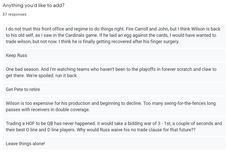 Only the fifth-most popular answer involved trading away Russell Wilson.
