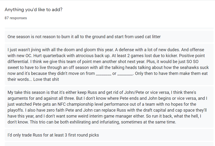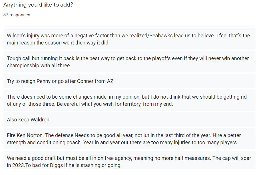 And Over 80 things YOU SAID about what the Seahawks need to do to improve for 2022