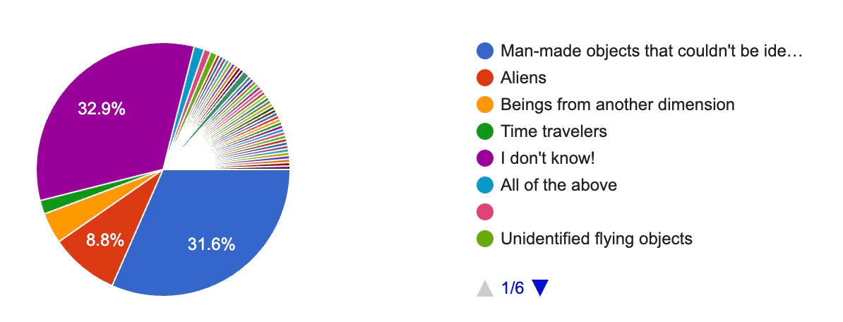 And even if nobody asked, this is what the UFO pie chart looks like (because I allowed the option to write in an answer, that’s why that portion looks so crazy):