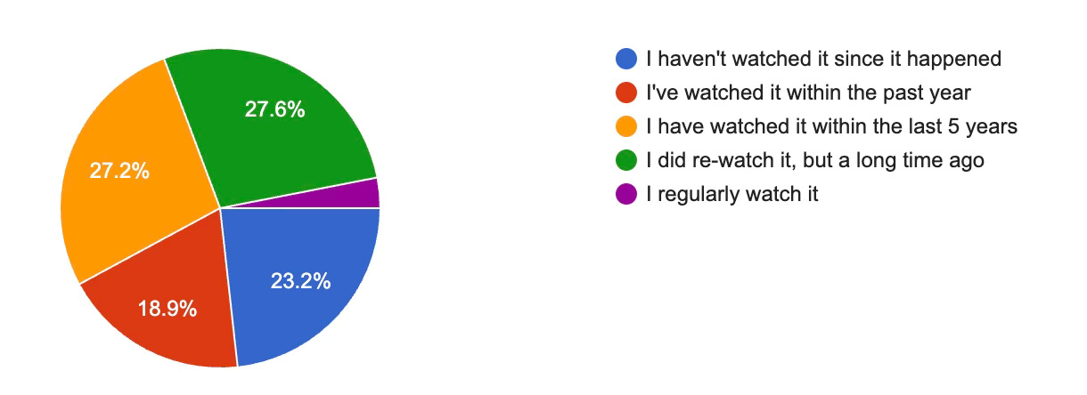 18.9% have watched it in the past year and 3.1% “regularly watch it”, so I’d say that means that 22% regularly watch it