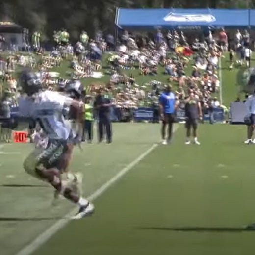 As I said in Friday’s podcast in one of my emotional moments, you just need to be out there on the field, Dee Eskridge. I know it’s out of your control, but no progress is going to happen for as long as you’re not practicing and at least one rookie receiver seems to be stepping up in your absence.