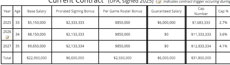 Lawrence only has a $7.7 million cap hit in 2025. He will still only cost $11.3 million in 2026 and $12.8 million in 2027.