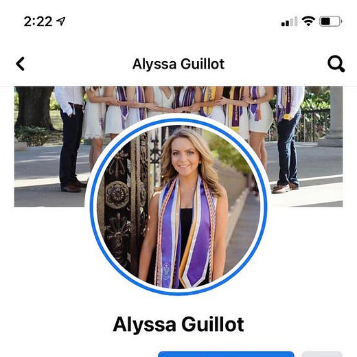 Within an hour, another LSU student, “Molly” aka @malimia_, replied to the tweet with another fascinating claim about “Alyssa”: That she is an LSU nursing student who literally works directly with Steve Gleason and is a member of “Team Gleason” and it is impossible to dispute the similarities between the two Alyssas in question.