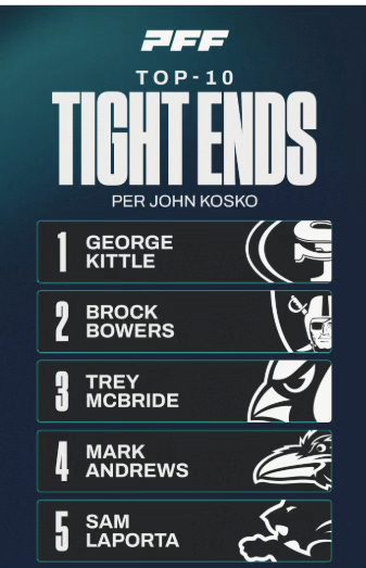 As Verse tries to put himself into the top-5 conversation for his position, McBride is already there. By the end of the season, he could be a popular choice as the best tight end in the NFL.