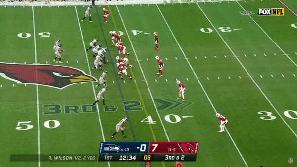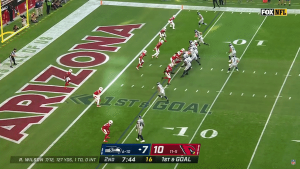 Early in the first quarter, Wilson makes a much better deep ball decision as Lockett is uncovered against the Arizona defense, and he then runs the ball into the end zone after gaining another 11 yards after the catch.