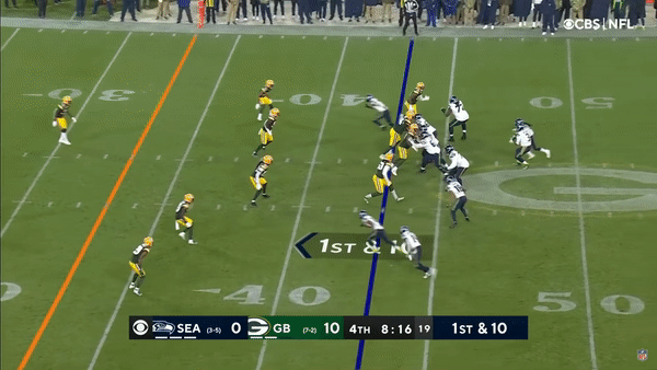In Week 10 against the Green Bay Packers, Wilson’s first game back from injury and a 17-0 shutout loss for Seattle, Lockett caught 2-of-8 targets for 23 yards and one interception. The pick was another unusual one, as Wilson has first-and-10 in Green Bay territory but tries to “make a play” by throwing a deep ball towards a double-covered and smothered Lockett in the end zone.