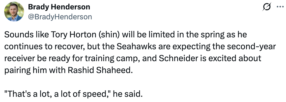 I mean, it wasn’t as though Tory Horton, a Seattle receiver who also had a punt return touchdown last year (95 yards, longest in the league), was inadequate or that he couldn’t take back that role. In fact, it makes more sense for HORTON to dial up his return snaps and dial down his receiving snaps given his propensity for injuries.