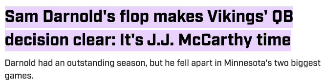 Cut to right before the last game of the season, Darnold was almost certainly “overrated” when the Vikings were 14-2: