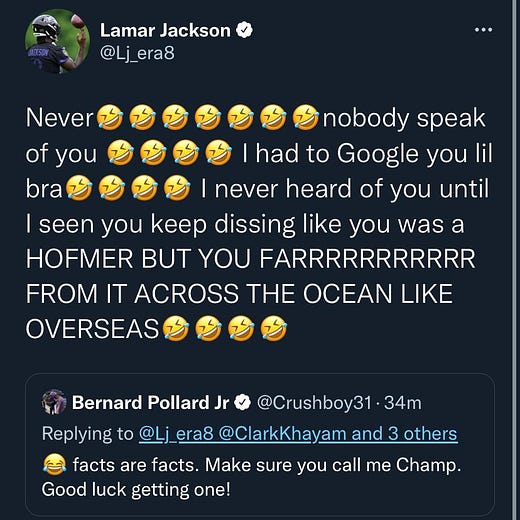 Former Ravens safety Bernard Pollard boldly stepped forward on Twitter this week to question if Jackson is able to make throws that elite NFL quarterbacks are able to make. Speaking of wide receivers specifically, Pollard said: “They give him the respect, but they don’t want to play with him. LJ is good but he’s not able to make the throws.”